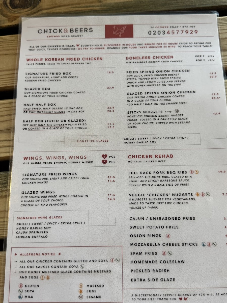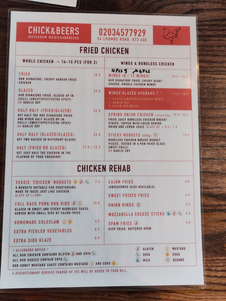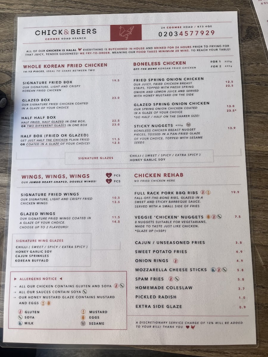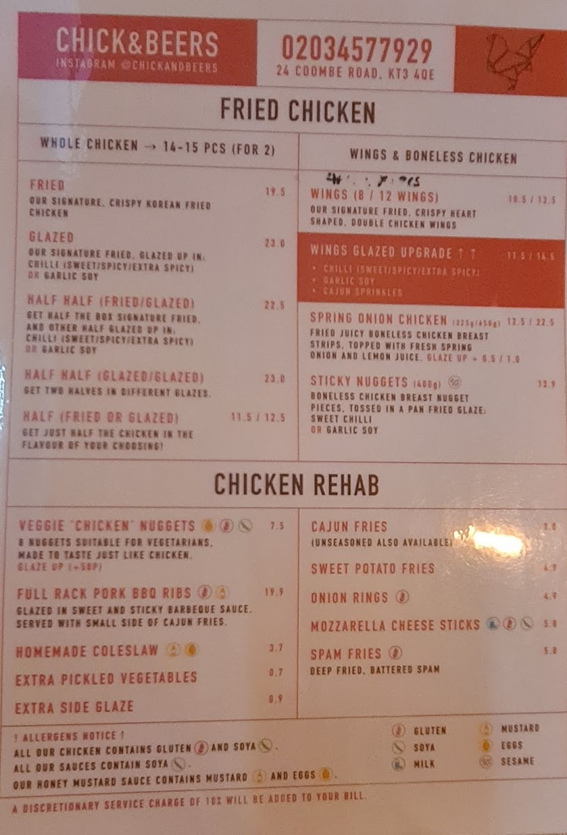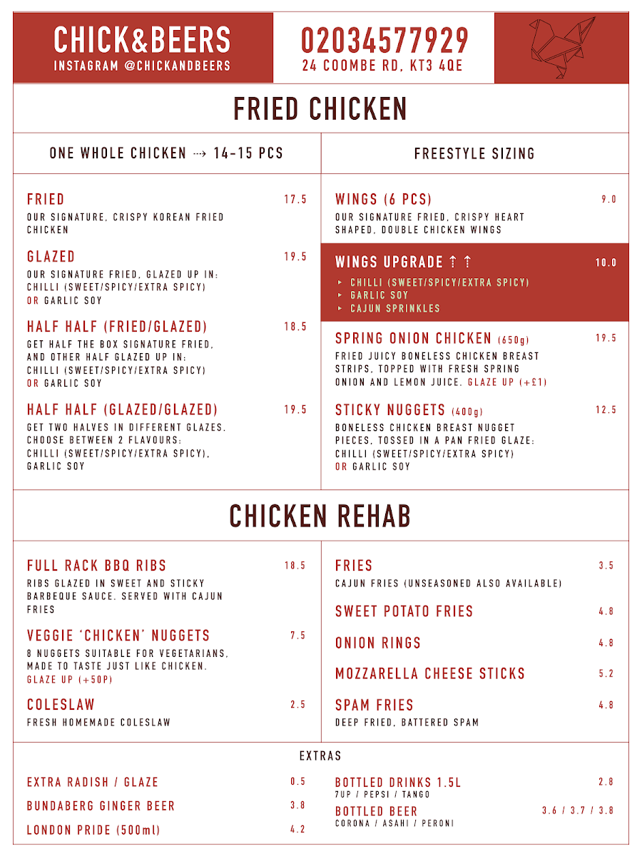 If you're seeking a Korean-style fried chicken joint that fuses authenticity with laid-back charm, the Chick And Beers (Coombe Road) Menu is a must-explore. Located at 24 Coombe Rd, New Malden KT3 4QE, this neighbourhood hotspot is a favourite among both locals and Korean cuisine enthusiasts-and for good reason.